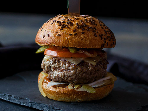Angus beef patty with cheddar jack cheese, bacon, and caramelized onions topped our house-made bourbon barbeque sauce.