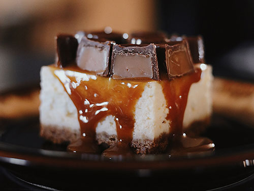 Dense, creamy mousse flavored with german white chocolate and pure vanilla extract. Garnished with raspberries. GF V